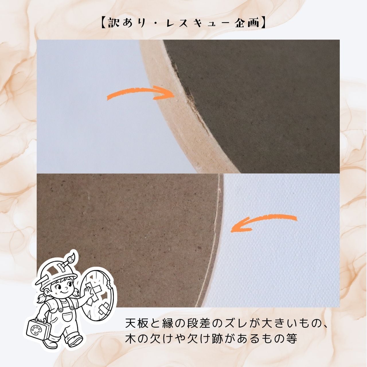 円パネル(直径25cm)のうち、天板と縁の段差のズレが大きいもの、木の欠けや欠け跡があるものを3枚セットのアウトレットとして販売いたします。