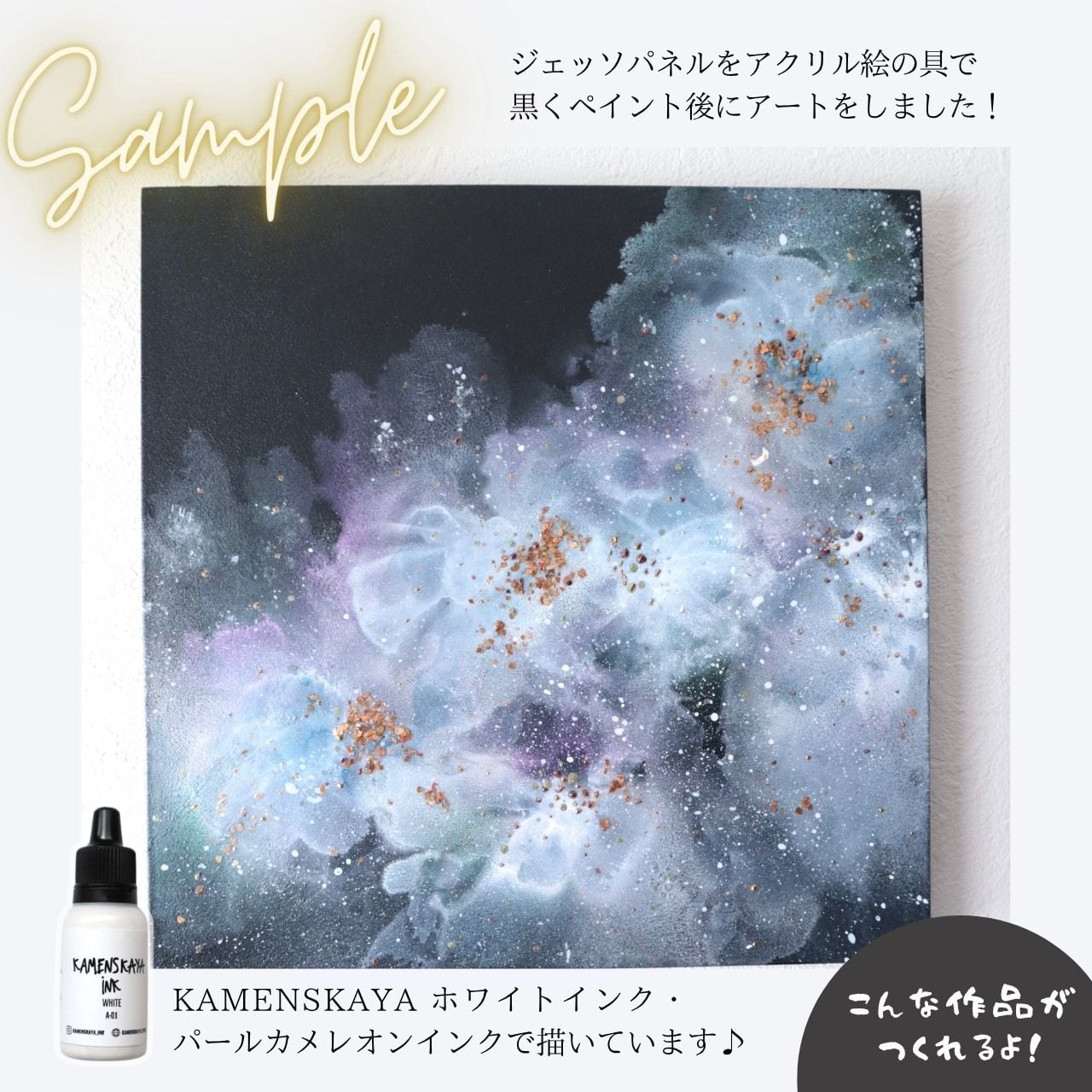 光を当てるとラメが輝き、明るい色合いになります。他のインクと綺麗に調和するので、自然に色合いに輝きと明るさをデザインできます。
